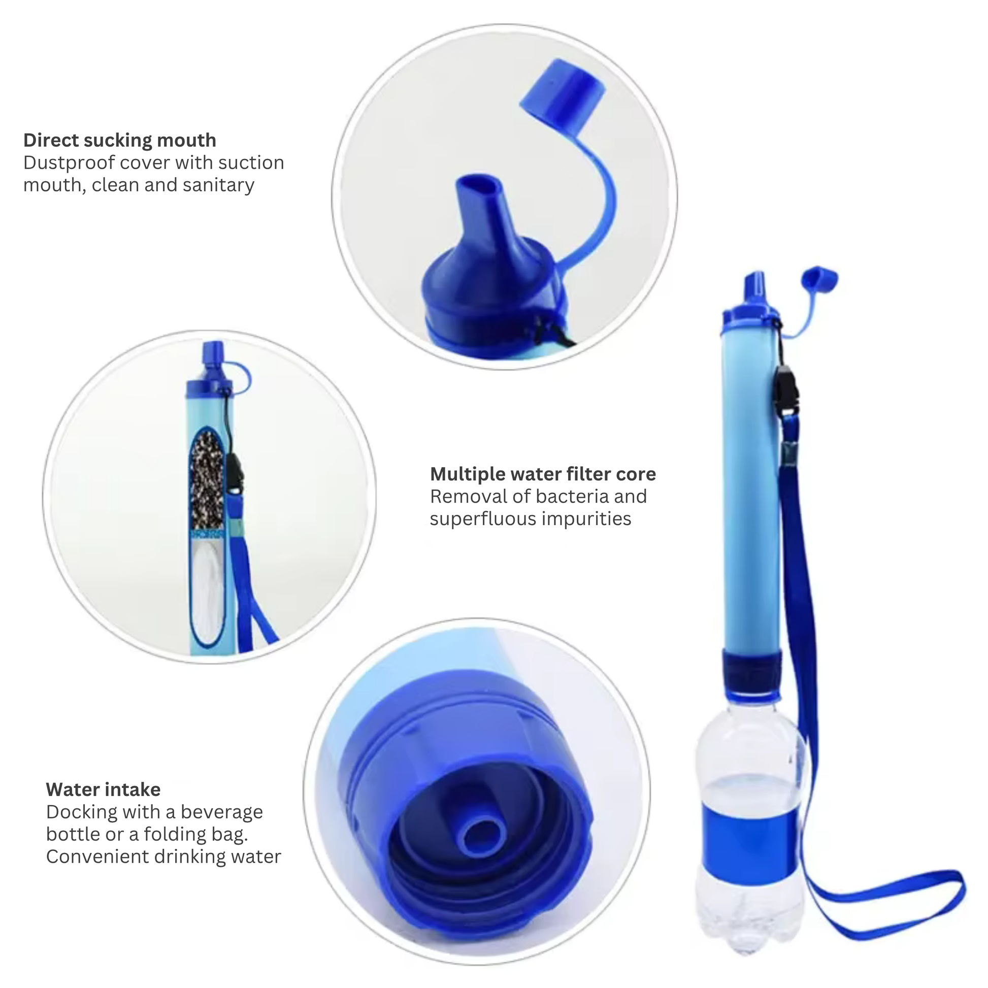 The Survival Water Filter Purifying Straw enables you to drink safely from natural sources by filtering bacteria, protozoa, and micro‑particles—compact, efficient, and ready for survival situations.